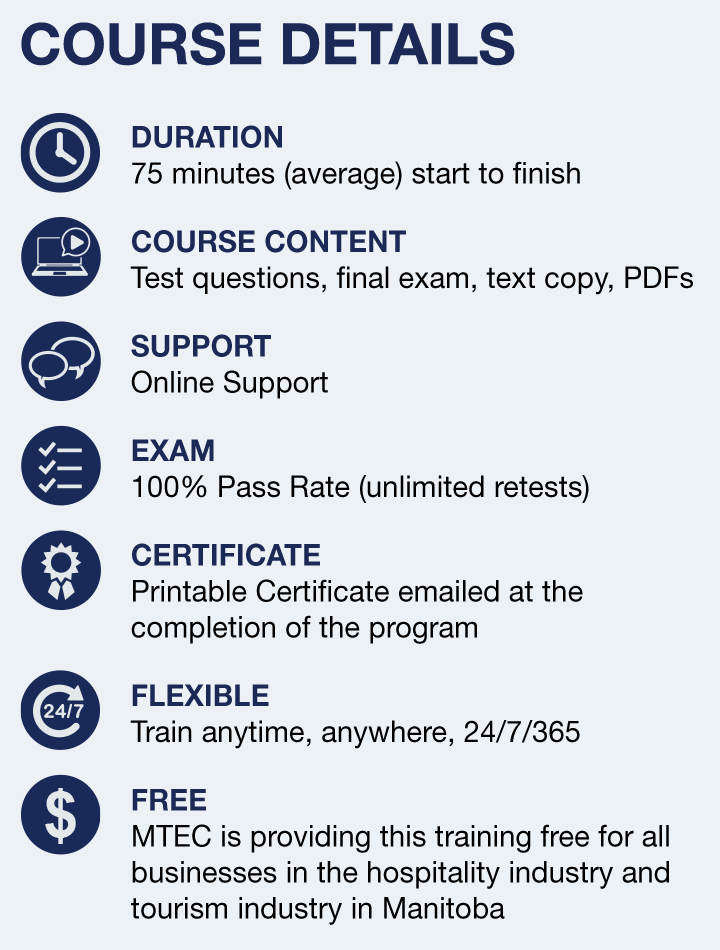 Manitoba businesses can now create a free business training account giving them access to this new online training course. When your account is approved you can request access codes for each employee who you want to take the Manitoba Service Excellence program.